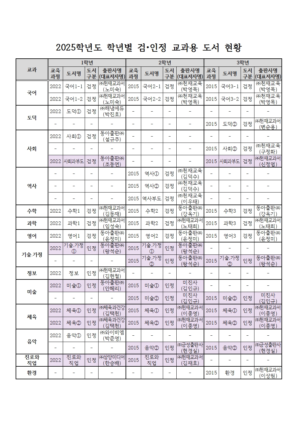 2025학년도 학년별 검인정 교과용 도서 현황.hwp