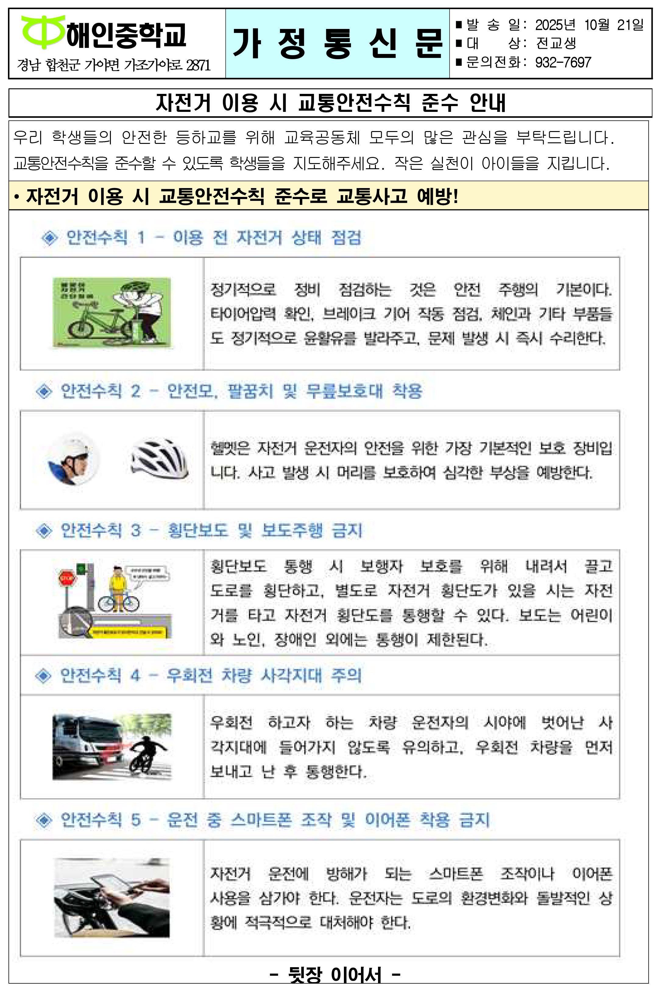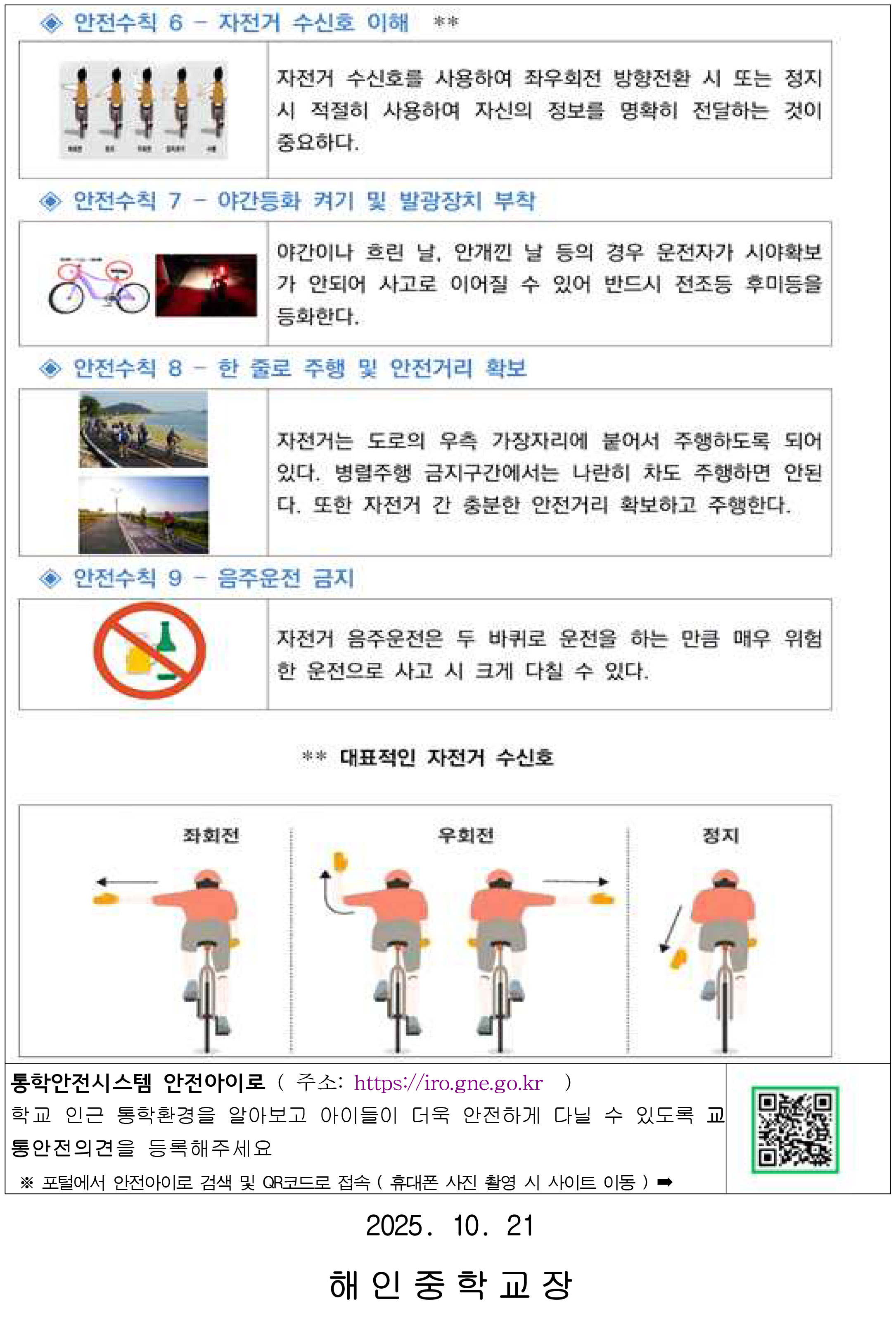 자전거 이용 시 교통안전수칙 준수 안내